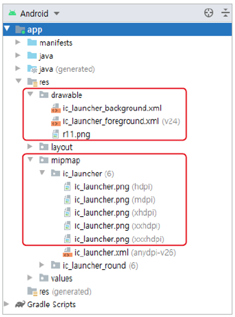 - 그림 파일이 [res]-[drawable] 폴더에 있어야 사용이 가능하다.