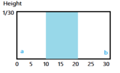 전체 값중 한개가 나올 확률이 $\frac{1}{30}$ 이라면, 파란 넓이 위치에 나올 확률은 10이기에 $\frac{1}{3}$ 이 된다.