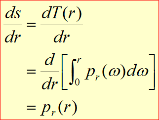$s= T(r) = \int_{0}^{r} p_{r}(\omega )d\omega $ p 를 r로 적분 0 ~ r 까지