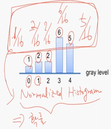 Normalized Histogram 정규화된 히스토그렘 = 확률 개념과 같다.