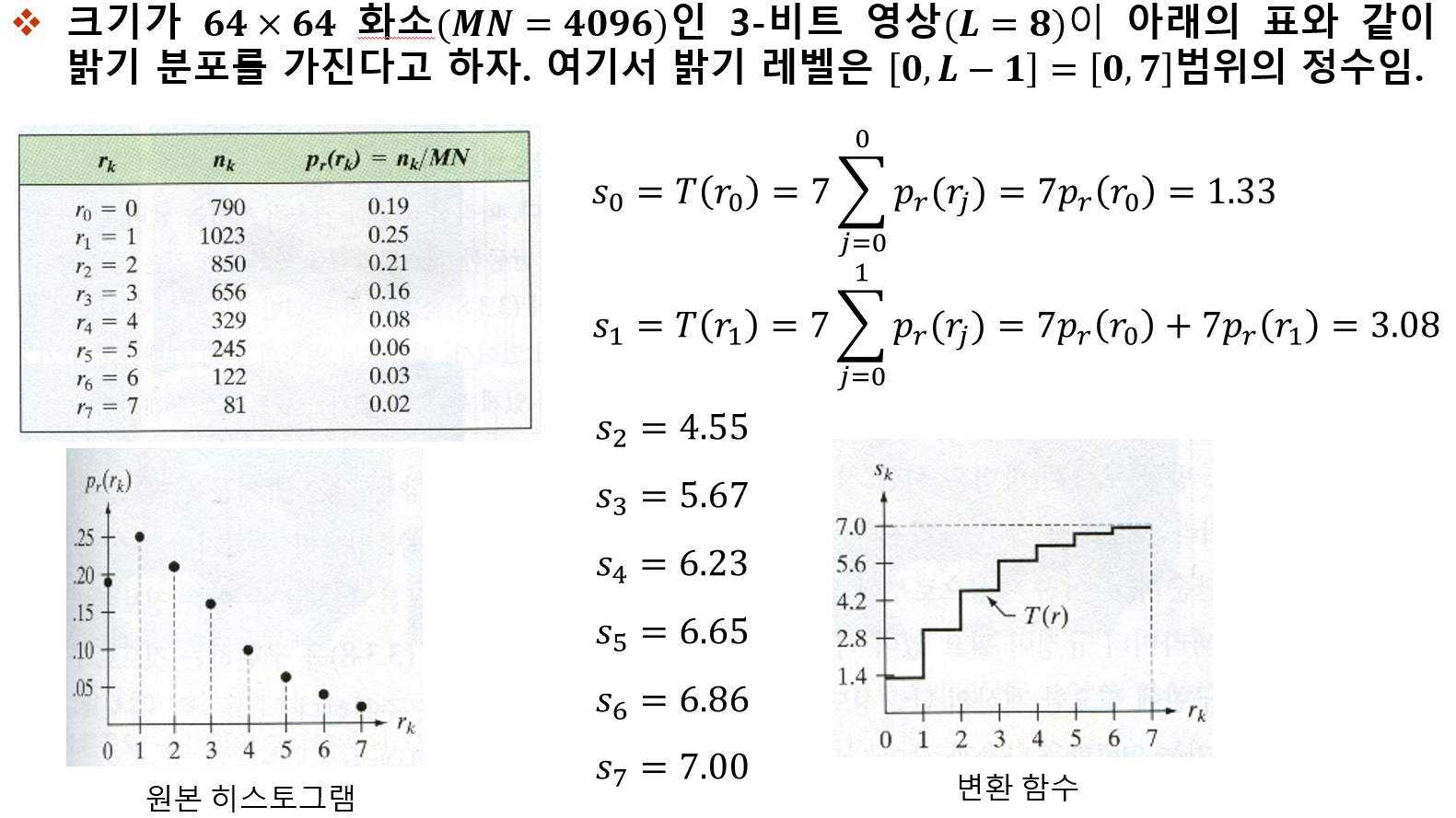 $r_{k}$ = k번째 gray level 값이다. 그레이 픽셀 값이다.