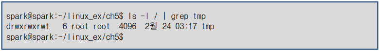 읽기 권한은 r, 쓰기 권한은 w, 실행 권한은 x로 표현, 해당 권한이 없다면 '-'로 표기됨.