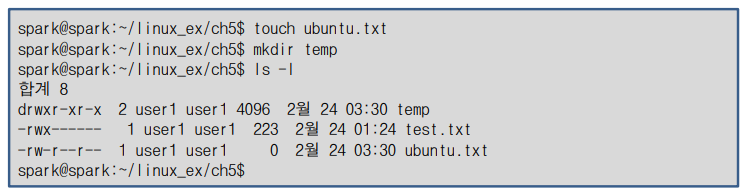 | 읽기 [ r ] | 파일을 읽거나 복사할 수 있다 (디렉터리 안에서 리스트업 가능하다라는 의미) |