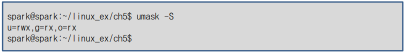 즉, 전체 권한이 777이라고 하면, 022라는 권한을 빼앗겠다 라는것. 위 명령어를 실행하고 난 뒤에는