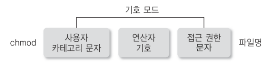 - 기호 모드 : 접근 권한을 변경하기 위해 문자와 기호를 사용하여 권한 표시