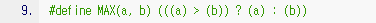 이를 다른 방법으로 응용하면 다음과 같이 최대값 구하는 함수 또한 define으로 제작이 가능하다.