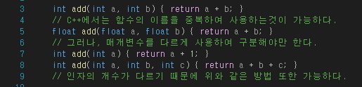 C++은 C와 다르게 같은 이름의 함수를 여러개 사용할 수 있다.