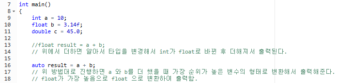 그렇다면 auto result는 a와 b형을 더하면서, 형변환을 시도한다.