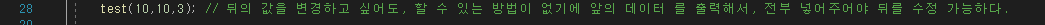 앞의 값을 그대로 10으로 사용하고 z의 값만 3으로 바꾸고 싶다고 하더라도, test에 3만 넣는것으로 바꿀 수 없다.