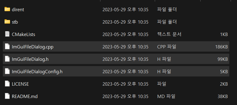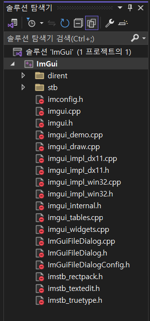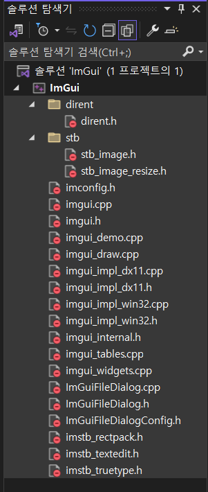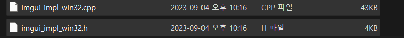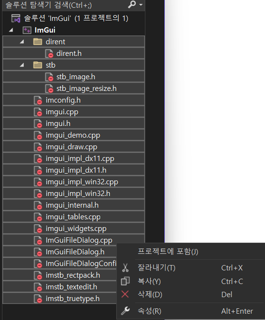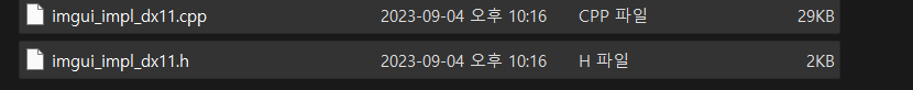 Imgui의 폴더에서 드래그한 각 .h 파일과 .cpp를 모두 복사하여 한 폴더에 몰아넣어주자.