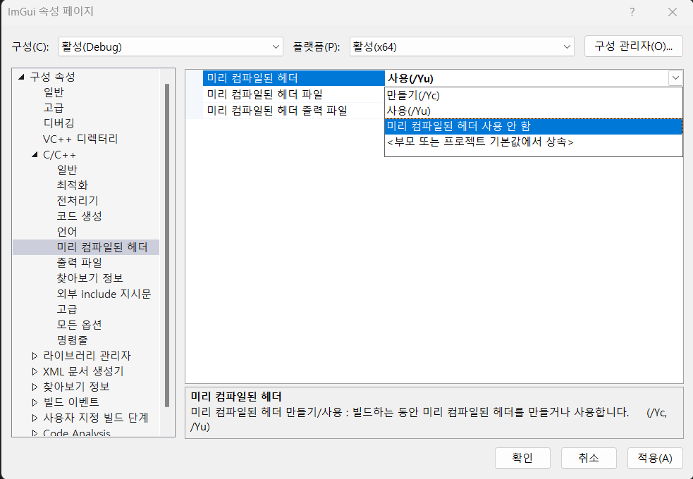 현재 설치할 ImGui는 Windows환경에서 사용하고, DirectX11에서 사용할 것 임으로. 참고바람.