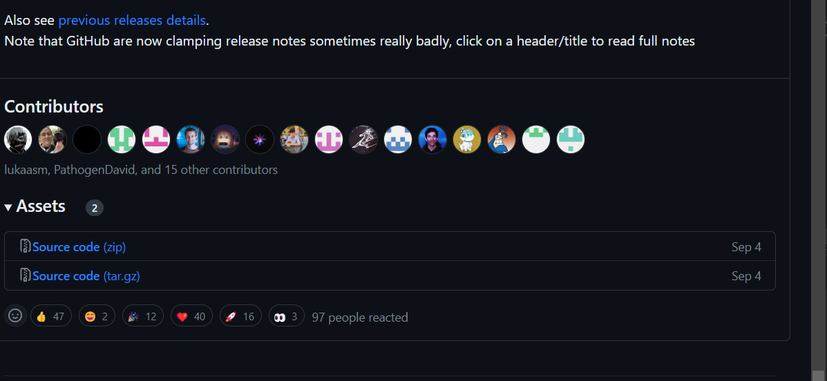 해당 버전을 클릭한뒤 맨 밑으로 내려주면 Assets가 나오는데, 여기서 zip파일을 받아주자.