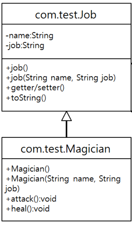 위 그림에서는 Magician이 test.Jop을 상속받는다고 표현되어있다.