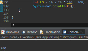 - 조건항의 결과 값이 true 면 항1, false 면 항2를 반환한다.