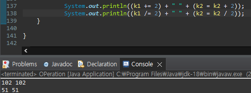 - -- / ++ : 자기 자신의 값을 하나 증가하거나 감소하는 연산자