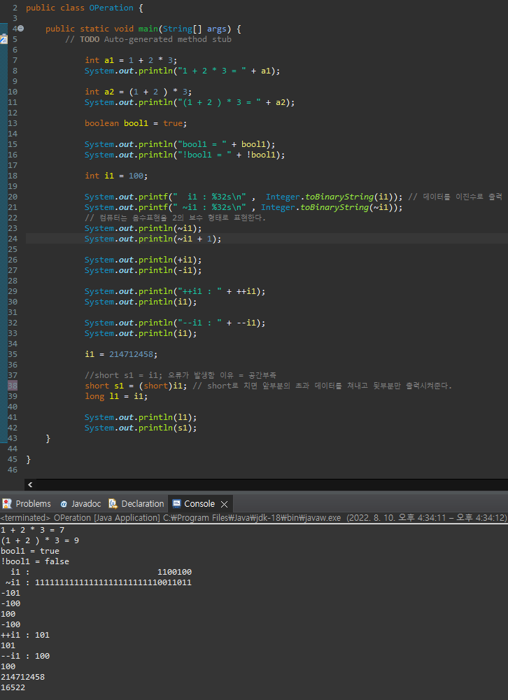- +, - : 숫자의 부호를 변경해주는 연산자.