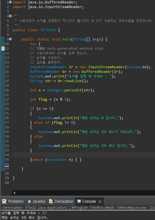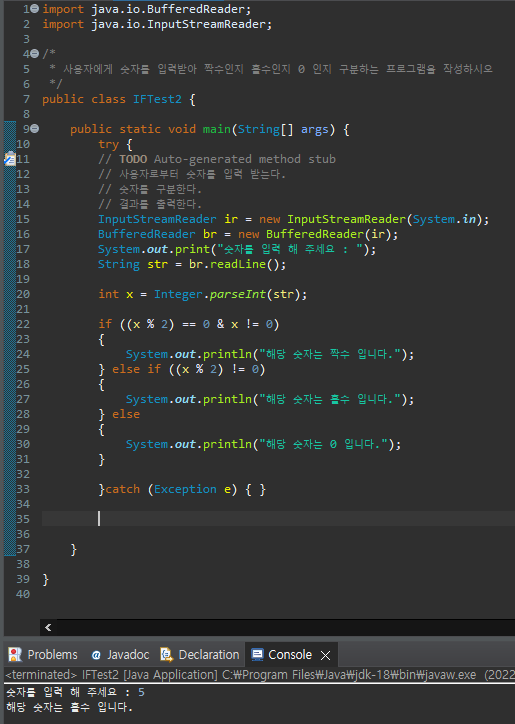조금 응용하면 숫자를 입력받아 짝수 인지 홀수 인지 0인지 확인하는 코드를 짤 수 있습니다.