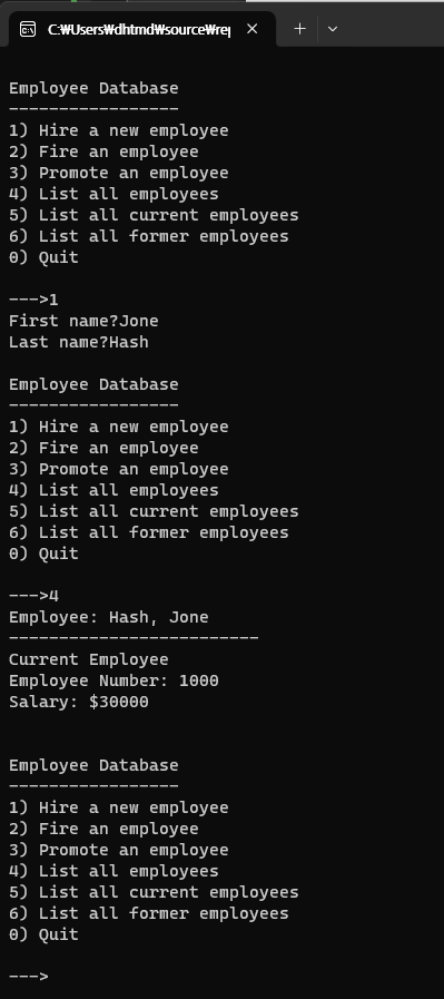 doHire 함수는 새로운 종업원의 이름을 사용자로부터 받고, 데이터베이스에 추가한다.