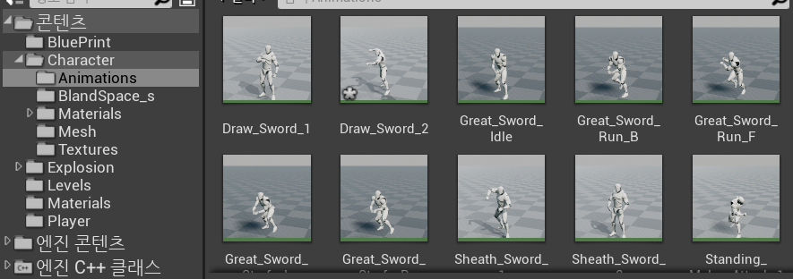 기본적인 공격, 이동, 무기들고 달리기 등의 애니메이션을 사용한다.