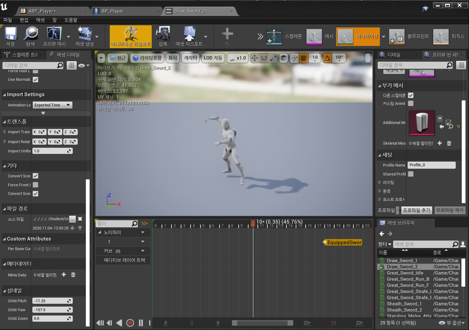 노티파이는 우리가 정의했던, 애니메이션중 Draw_Sword_2에서 추가하면 될 것 이다.