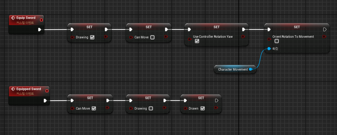 이 CanMove를 이제 칼을 뽑아드는 모션이 나타나게 되면, False로 하고, 전부 뽑아들고, 칼모션으로 완전히 이동했을 때 true로 바꿔줄 것 이다.