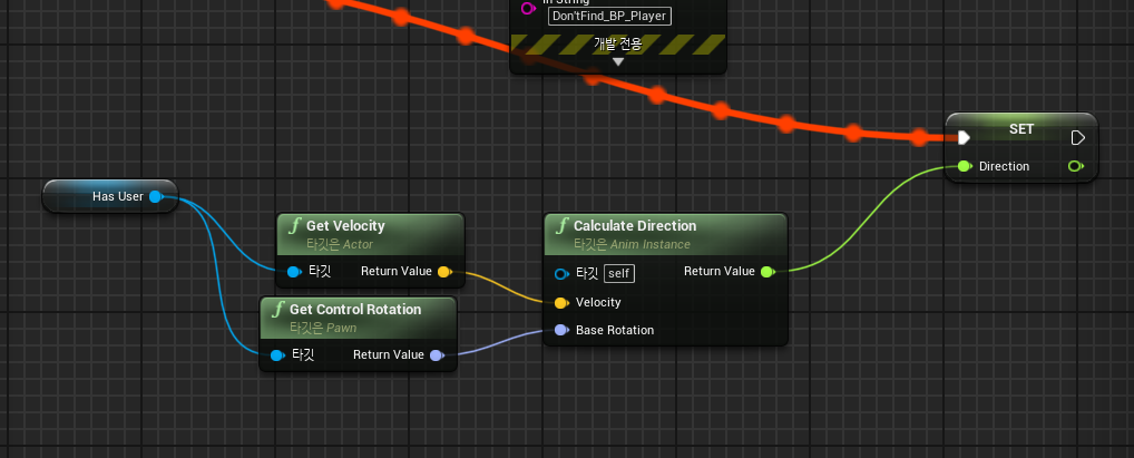 Player에서 Velocity와 Control Rotation을 가져와서 현재 Contorl되는 객체의 방향과 ROtation을 가져와, -180에서 180을 반환한다.