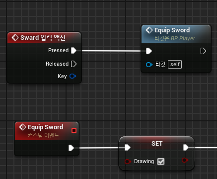 Sward에 대한 입력값이 입력되었을 경우, Equip Sword의 커스텀 이벤트를 실행하게 할 것 이다.