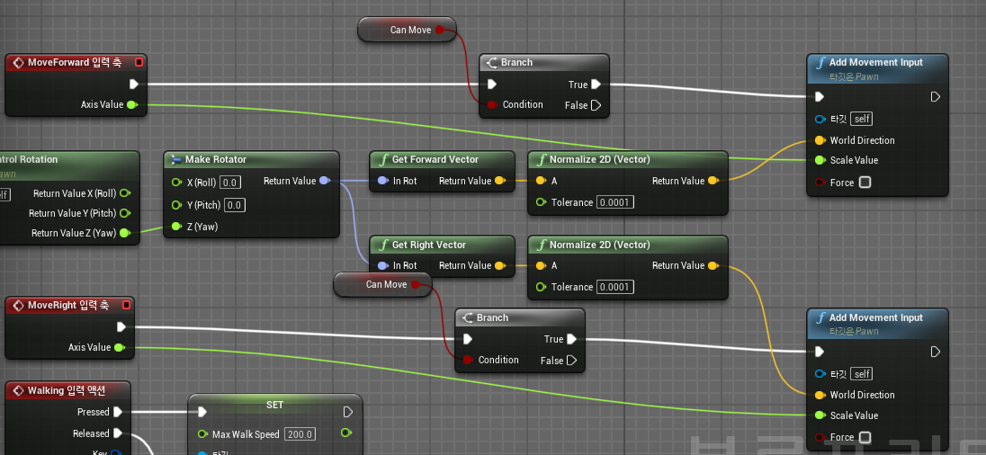위와같이, Can Move에 정의하여, CanMove가 True일 때만 움직이게 해준다.