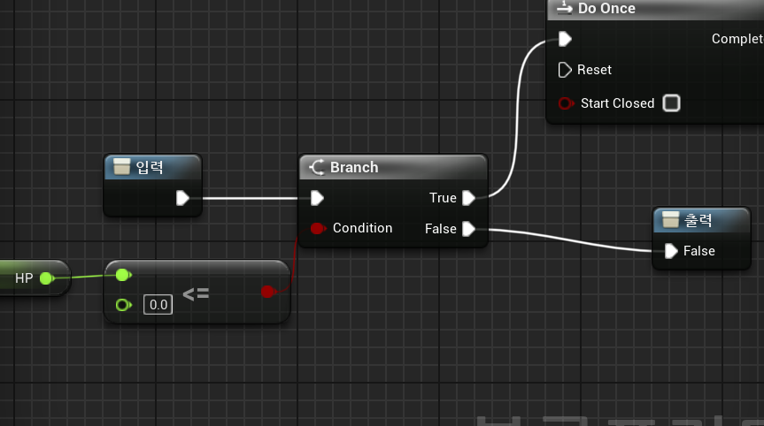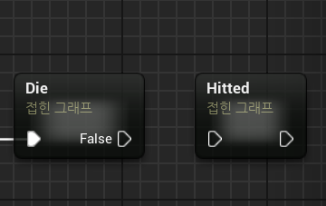 Hit 애니메이션은 사망하지 않았을 때 동작함으로, 사망의 False를 NextNode로 연결할 수있도록, 출력에 연결해준다.