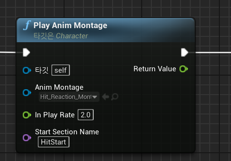몽타주는 Play Anim Montage를 통해 재생시킨다. 몽타주를 재생하고 피격객체를 뒤로 밀어주어야 한다.