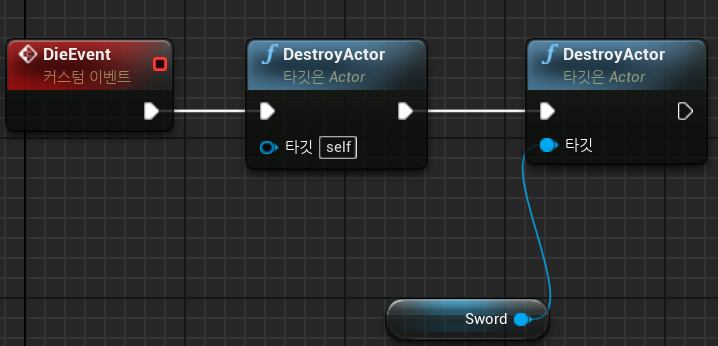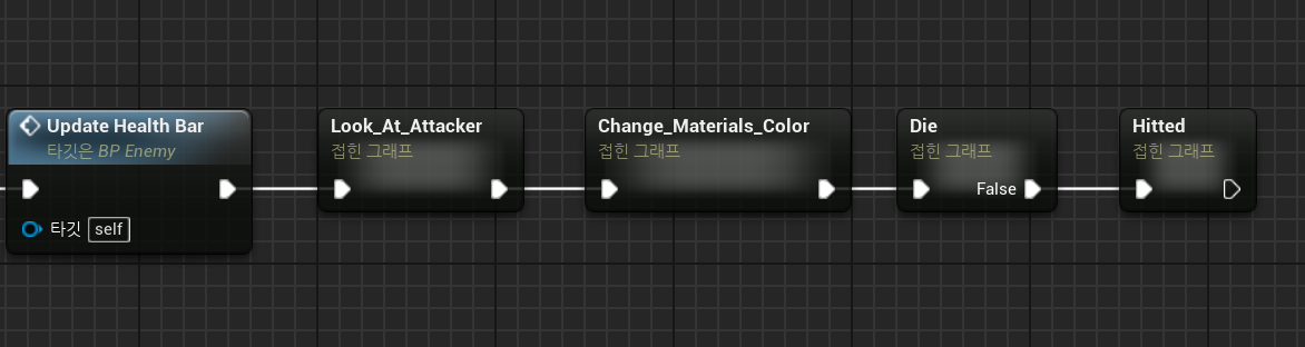 이제, 공격받았을 때의 이벤트로 이동하여 추가할 이벤트들을 연결해보자.