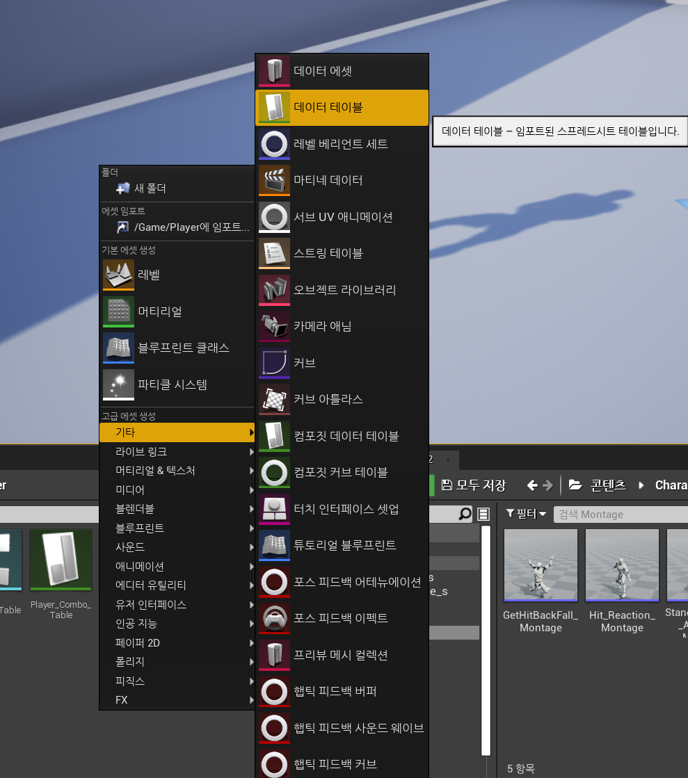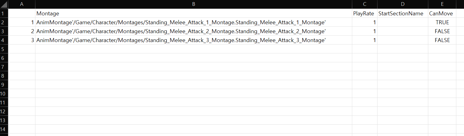 형식이 만들어져 있는 CSV파일이다. 이 데이터를 언리얼에서 가져와 사용하려면 다음과 같은 순서를 따른다.