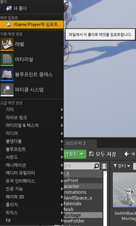 파일에서 이 폴더로 에셋을 임포트 시도한다.
