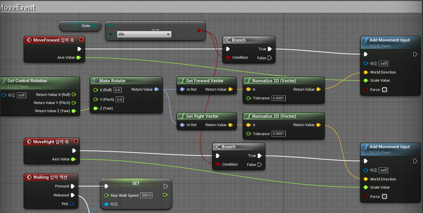 CanMove에 관련되어있는 모든 Branch문을 State가 Idle형태일 때만 동작하도록 바꾸어준다.