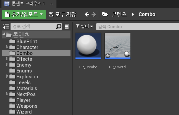 각 항목을 콘텐츠-> 폴더생성 을 통해 항목당 어울리는 폴더로 이동시켜 정리한다.