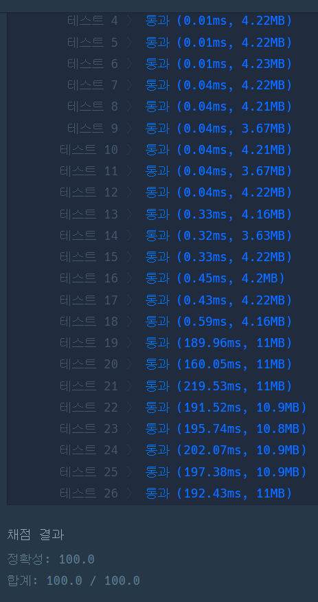 그리고, 이진탐색을 귀찮아서 최솟값 기준으로 전체배열을 탐색하여 그냥 덧셈으로 했던것도 이유인것 같다.