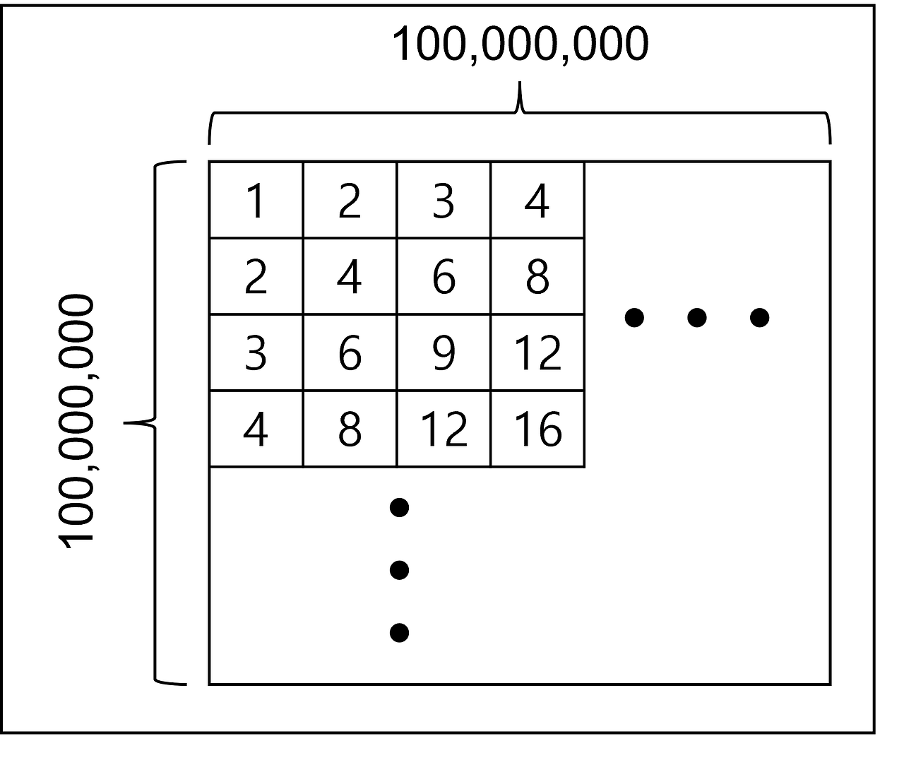 억억단은 1억 x 1억 크기의 행렬입니다. 억억단을 외우던 영우는 친구 수연에게 퀴즈를 내달라고 부탁하였습니다.