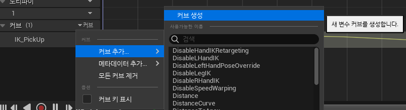 새 커브 생성을 통해 새 변수 커브를 생성할 수 있다.
