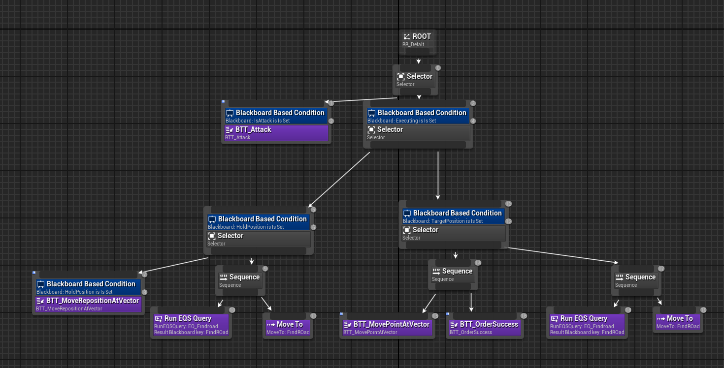 - SquadManager는, TargetSquad가 Nullptr이 아닐경우, 비헤이비어 트리에서 TargetVector를, Character들에게 전달.