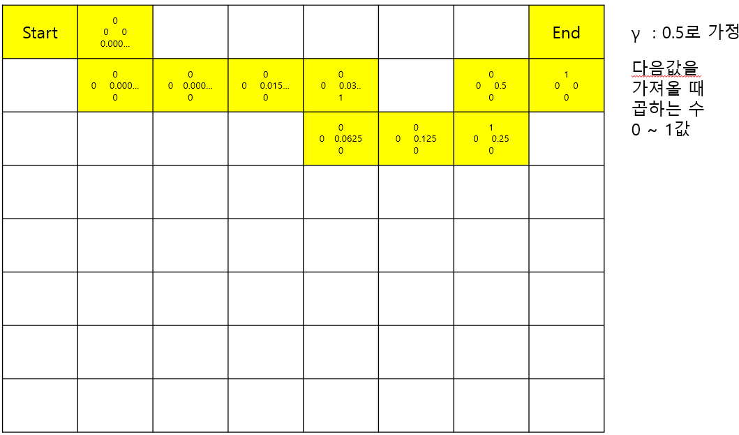 감마 : 효율적인 패스를 찾게 해준다. 0 ~1 사이의 값이다.