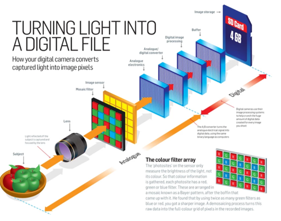 사진 이미지 상에서는 X축을 기준으로 밝기가 아날로그로 변하게 되는데, 카메라에서는 아날로그 신호를 처리할 수 없음.
