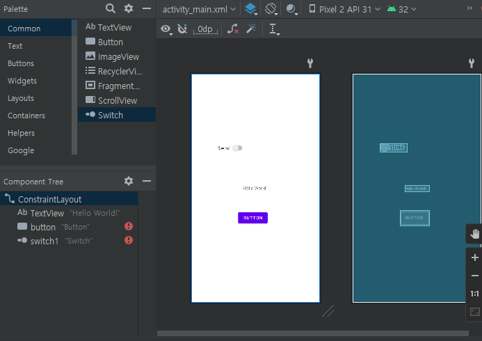 디자인을 왼쪽 Text View에서 끌어다가 오른쪽 에 옮겨놓으면