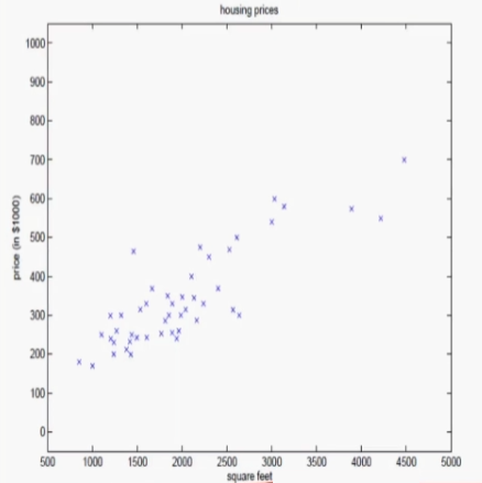 거실 면적과 집 가격 사이의 선형회귀 가격정보의 관계를 측정하자.